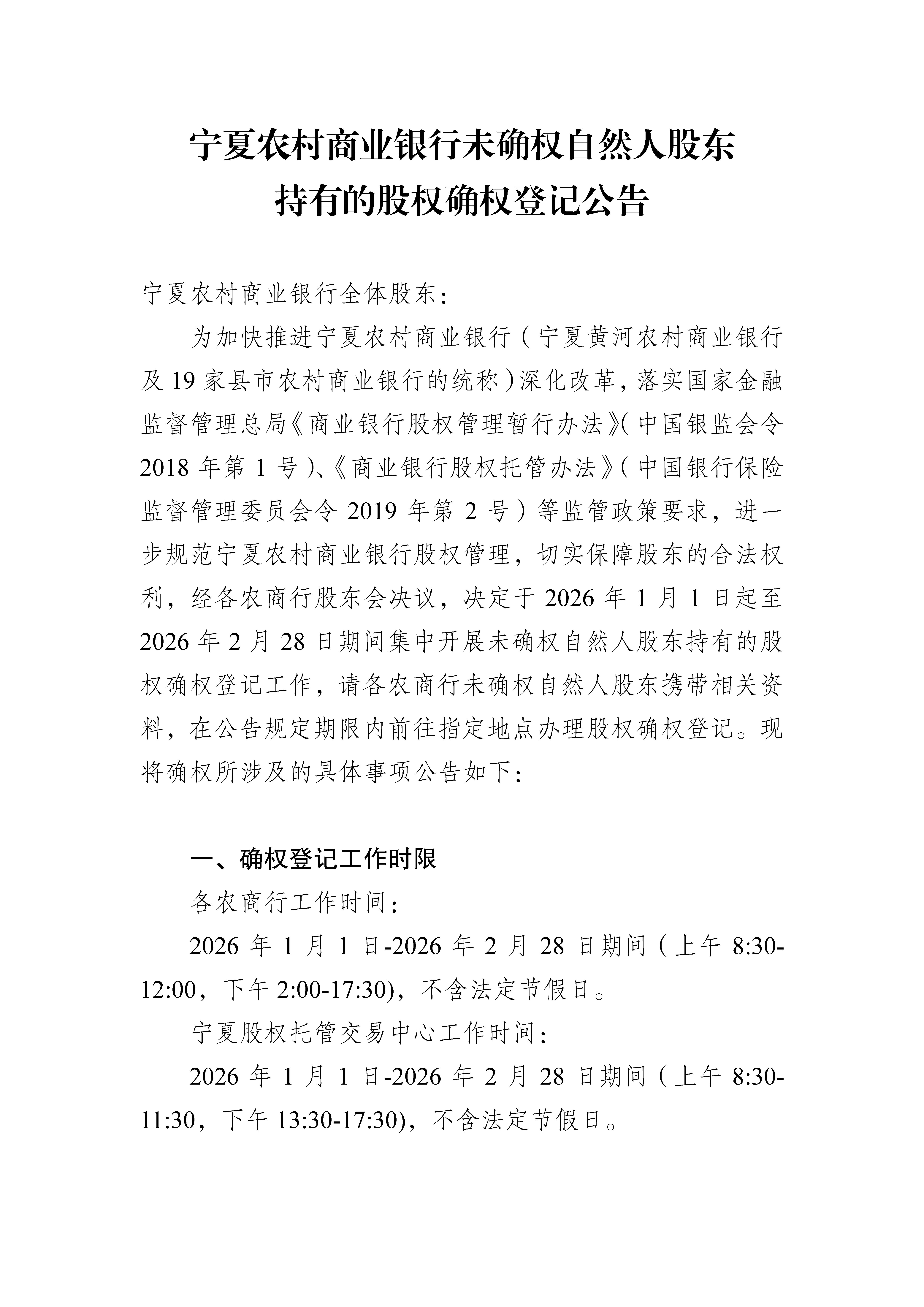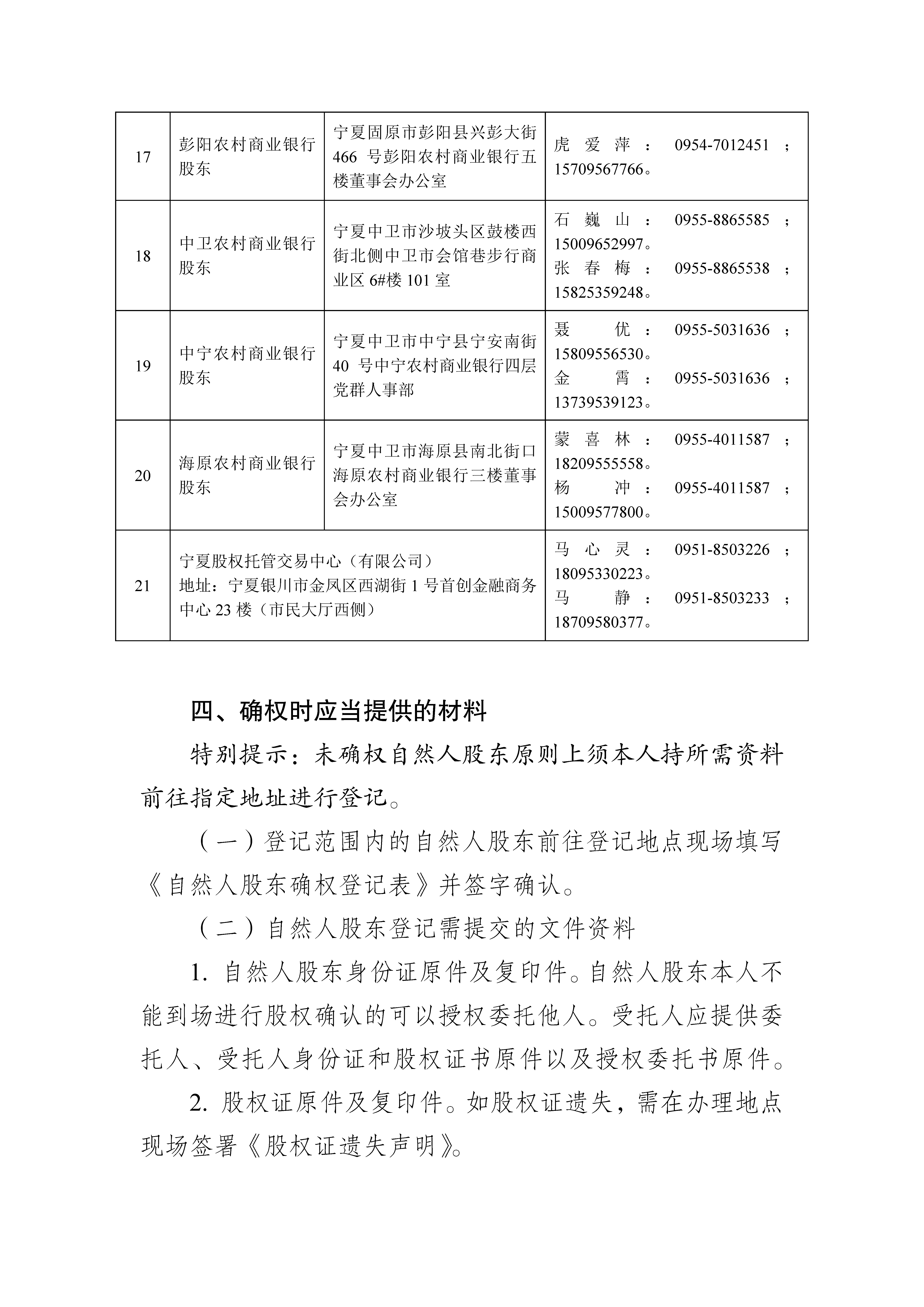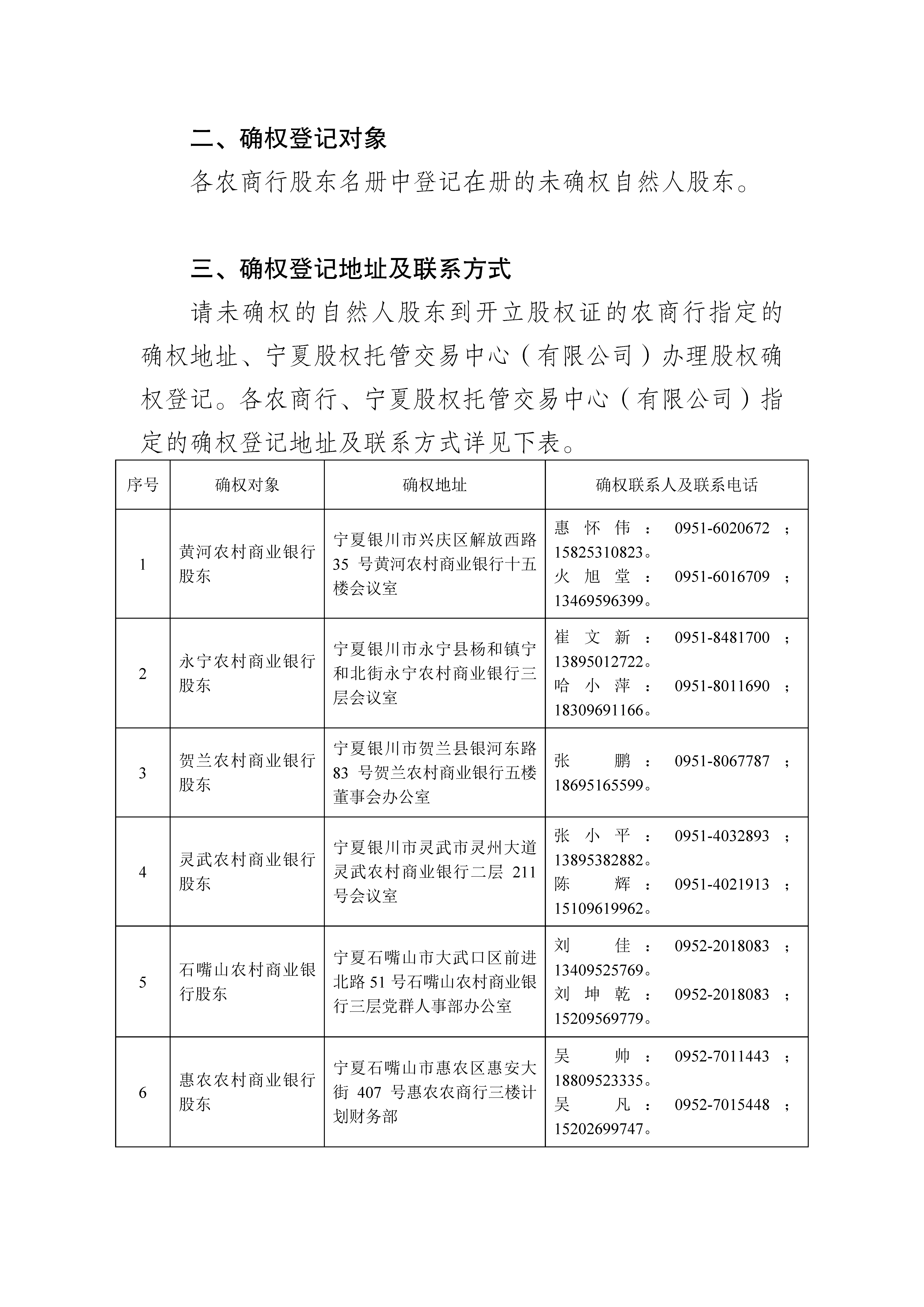 股权登记托管与转让:存管交易部 0951-8503226